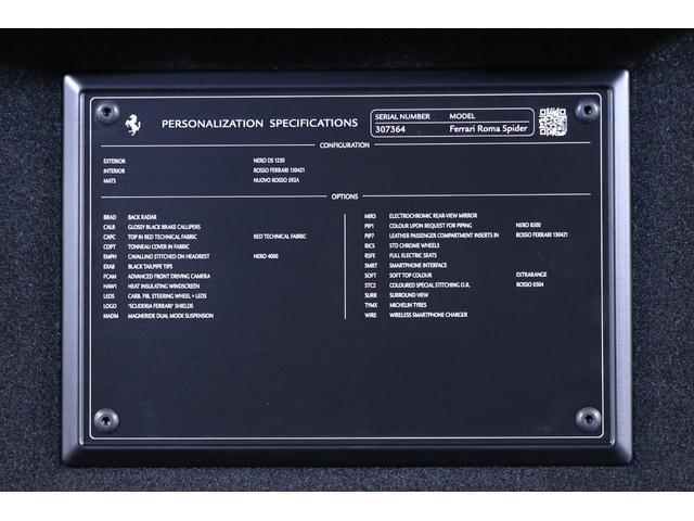 フェラーリ ローマスパイダーベースグレード 左ハンドル カーボンLEDステアリング マグネライドサス フロントセクションプロテクションフィルム グロスブラックブレーキキャリパー ヘッドレスト跳馬刺繍 ブラックテールパイプ