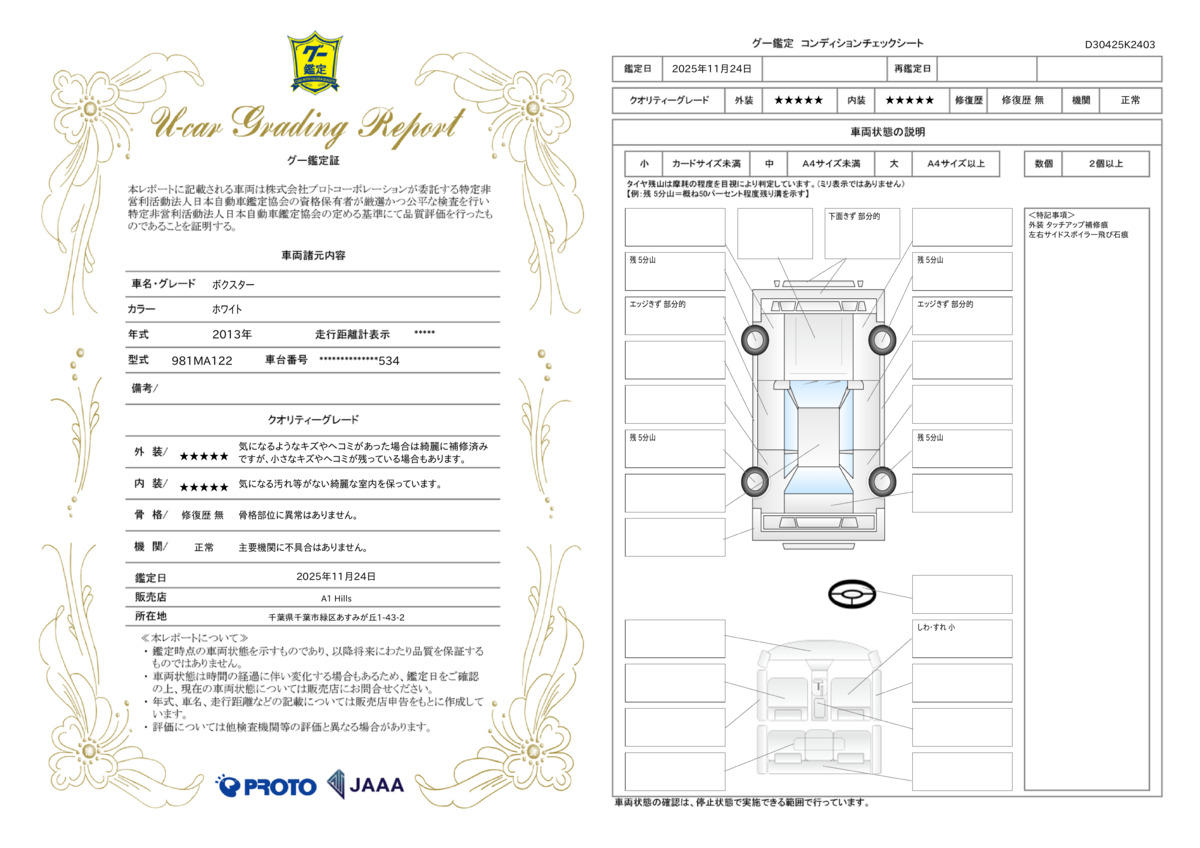 | 走行距離 | 2.2万km | 修復歴 | なし |