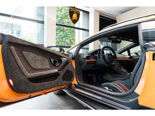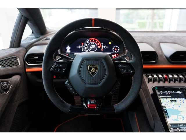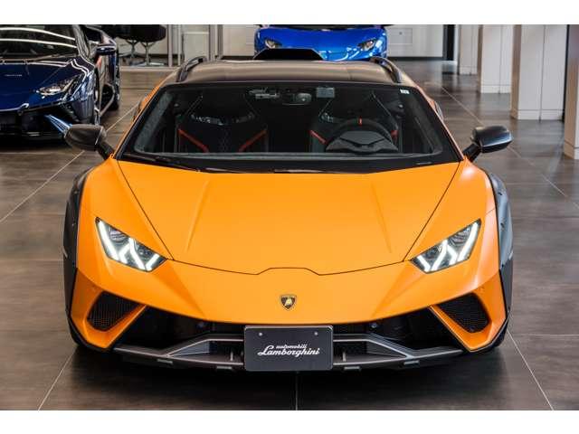 ランボルギーニ ウラカンステラート(LDF)4WD ARANCIO BOREALIS 認定中古車 左ハンドル コラムMTモード付7AT ワンオーナー 定期点検記録簿 禁煙車 障害物センサー クルーズコントロール ドライブレコーダー ETC ナビ ミュージックプレイヤー接続可