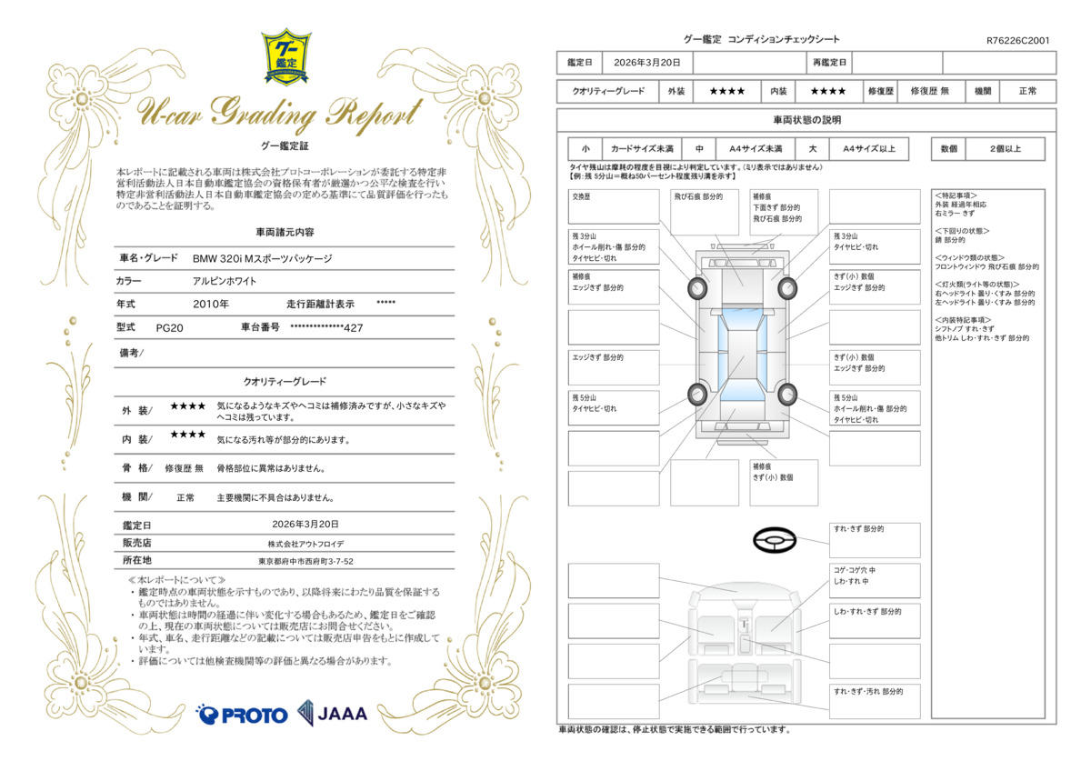 | 記録簿 | ○ | 輸入認定中古車 | ー |
