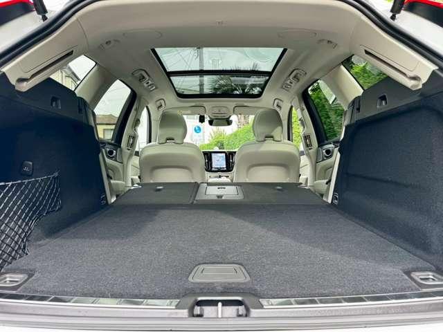 後席を倒せばフルフラットなスペースに。使用用途次第でパノラマルーフから星空を眺めながら車中泊や、大きな荷物の積載も可能です。