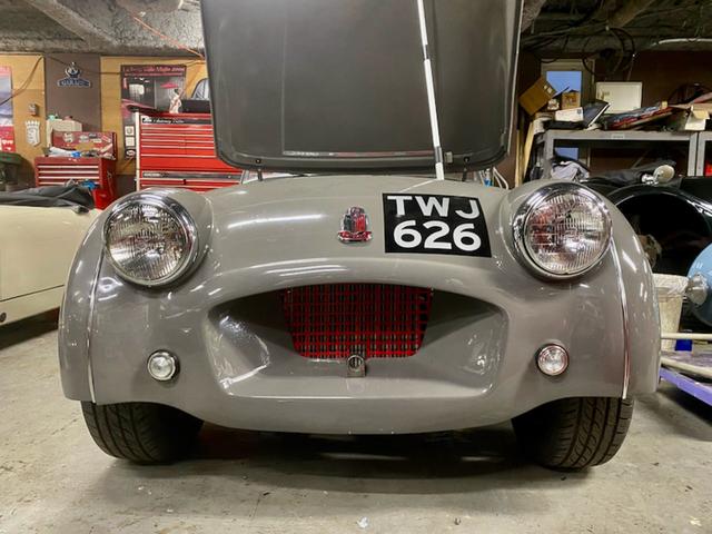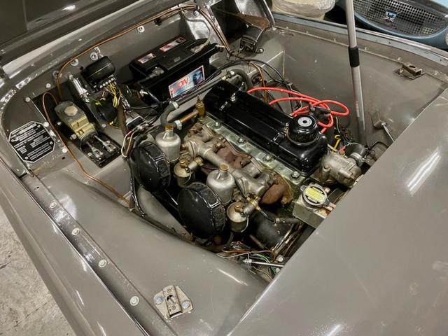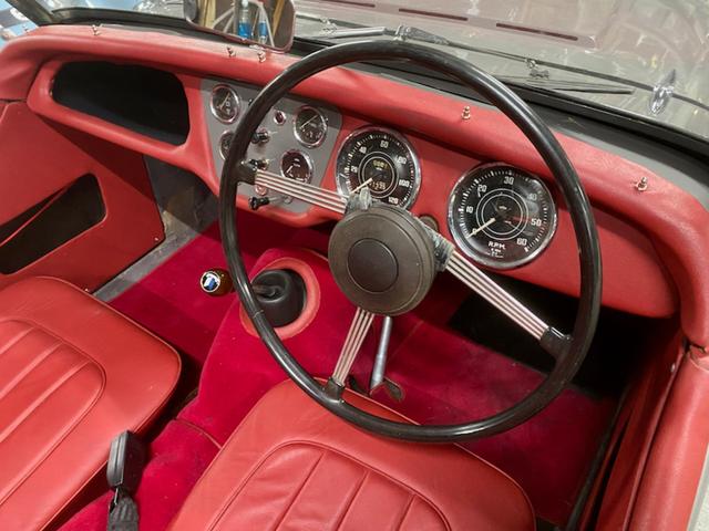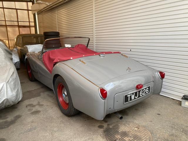 希少なロングドア初期型TR2です。 品の良いオリジナルのグレーに赤の内装。