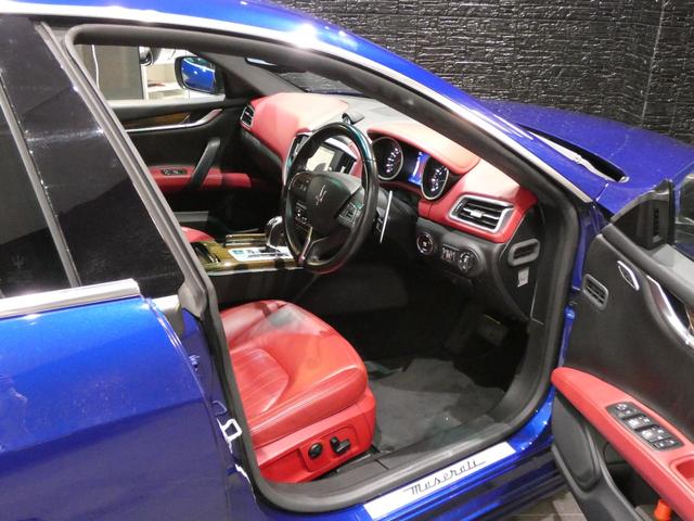 マセラティ ギブリS ガラスSR カーボンスポイラー パークトロニック パドルシフト 赤革 F席シートヒーター クルコン デイライト 純正SDナビ 地D Bカメラ ローダウン フォージド20AW D車