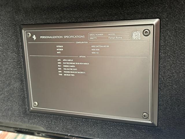 フェラーリ ローマベースグレード 左H/外装ネロデイトナ/内装ネロ/メモリ付き電動シート/AppleCarPlay/パーキングカメラ/シートヒーター/パドルシフト/クルーズコントロール/Bluetooth/