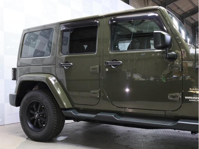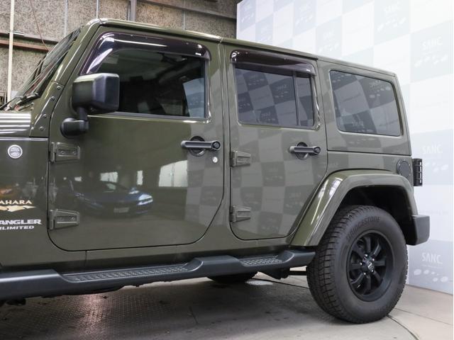 クライスラー・ジープ ジープ・ラングラーアンリミテッドサハラ 禁煙1オーナー 黒革 シートヒーター 2DINナビ フルセグTV DVD BT バックカメラ ボディ同色オーバーフェンダー ボディ同色ハードトップ アルパイン製プレミアムスピーカー サブウーファー