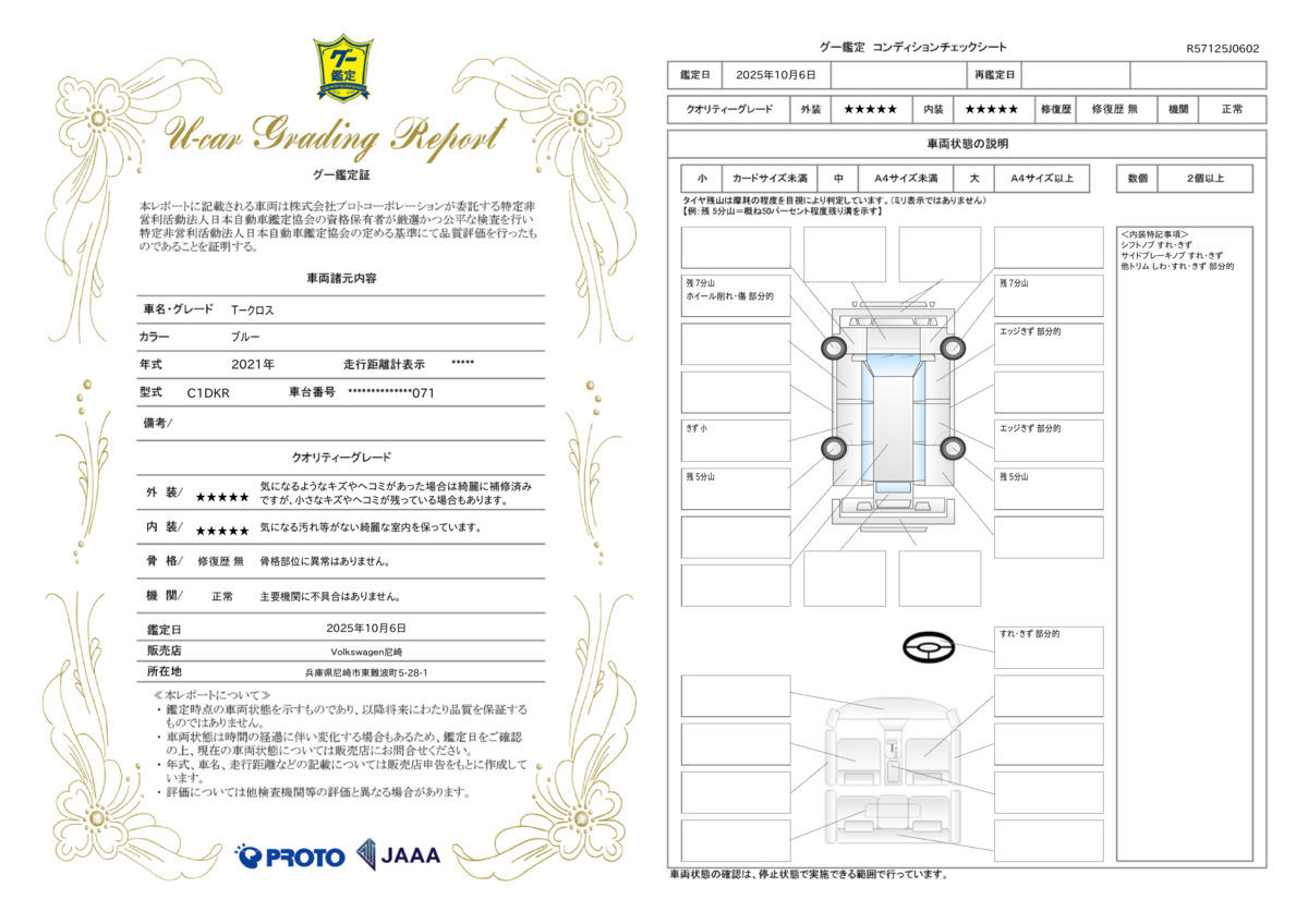 走行距離 | 1.6万km | 修復歴 | なし |