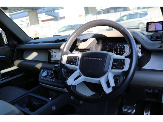 ランドローバー ディフェンダー 純正ナビ 革シート スライディングパノラミックルーフ ハンドルヒーター 3Dサウンドカメラ BSM LEDヘッド メモリ付きパワーシート クルコン アイドリングストップ HUD サイドステップ