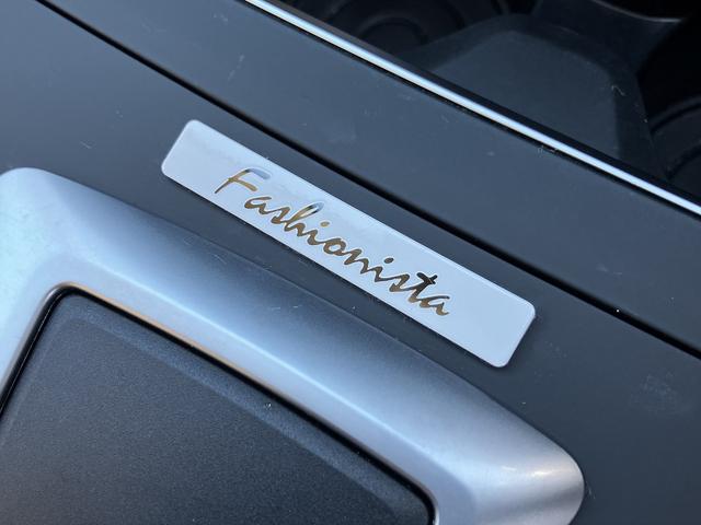 「Fashionista」のバッジをシフトレバー前方に配置。手書き風のエレガントなロゴが、限定モデルの証をさりげなく主張します。