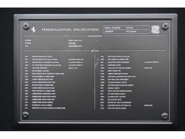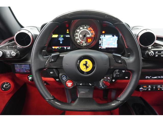 フェラーリ F8スパイダーベースグレード エンジンカバーカーボンファイバー製 サスペンションリフター フロントバンパー前部カーボンファイバー ドライバーゾーンカーボン センターブリッジカーボン製 内装レッドアルカンターラ ツートーンボディ