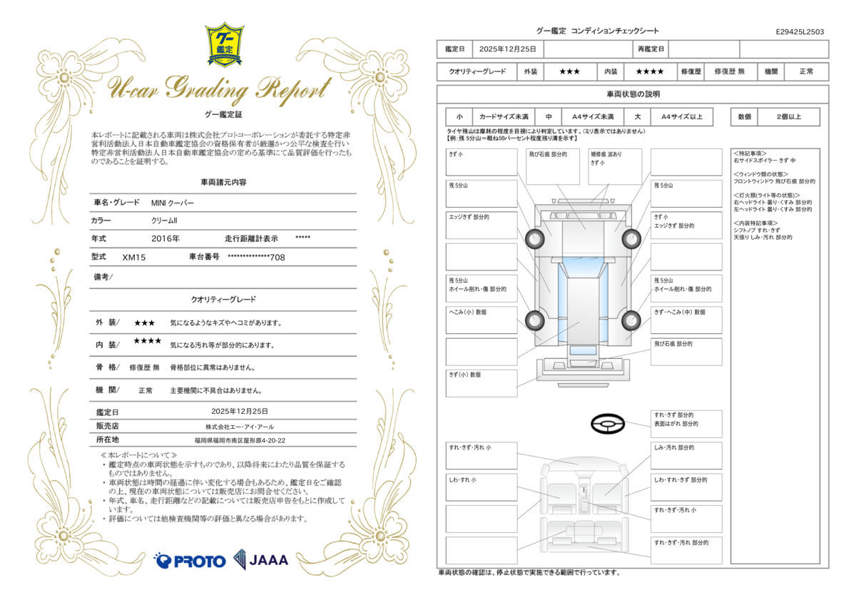 | 走行距離 | 3.7万km | 修復歴 | なし |
