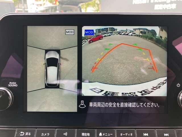 アラウンドビューモニターは4方のカメラで真上から車を見たようにモニターで確認ができる日産の自慢の装備です。是非実際の車で体感してみてください。