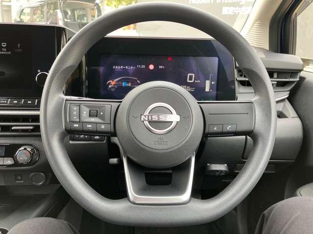 左側にオーデイオやナビのコントロールができるスイッチ、運転中は手を放さず手元で操作可能なんです!