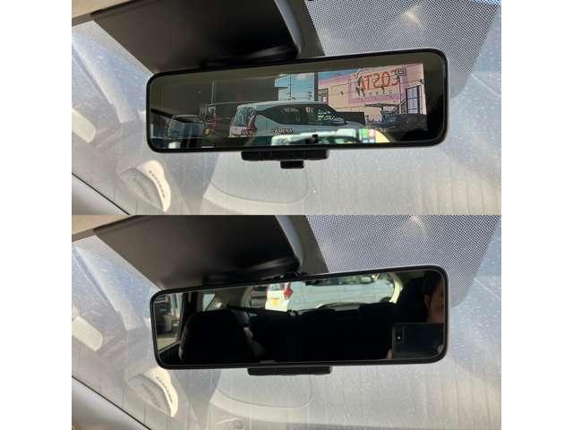 インテリジェントルームミラー装備、後席に人が乗ってるときや 沢山の荷物で後方が見えにくい時にカメラオンで後方視界すっきり。 オフにすれば通常のミラーとしても使える便利な機能です。