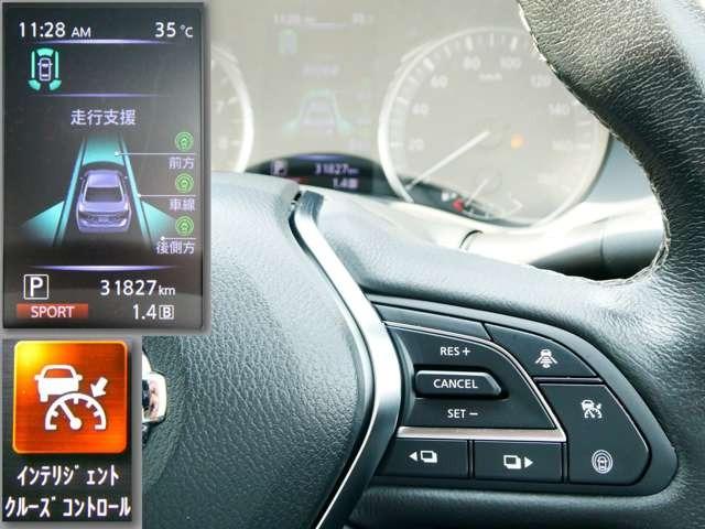インテリジェントクルーズコントロール!設定した速度で走行し、先行車との距離を自動的に調整し、運転者の負担を軽減します。セーフティシールドで運転支援システムを全作動にインテリジェントペダルも作動!