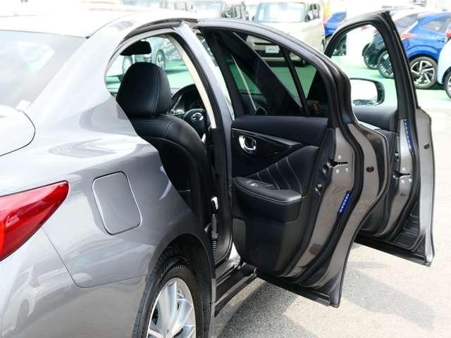 後席もゆったりの空間。エンジンのこもり音もオーディオスピーカーから出す逆位相の制御音で消音する「アクティブノイズコントロール」で快適な空間。