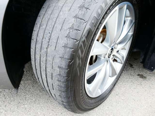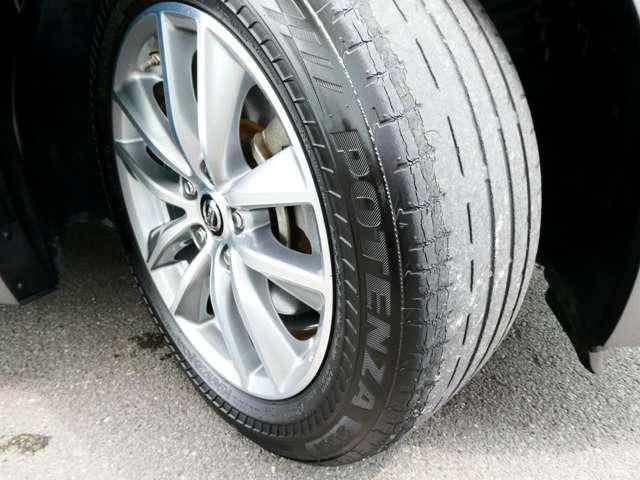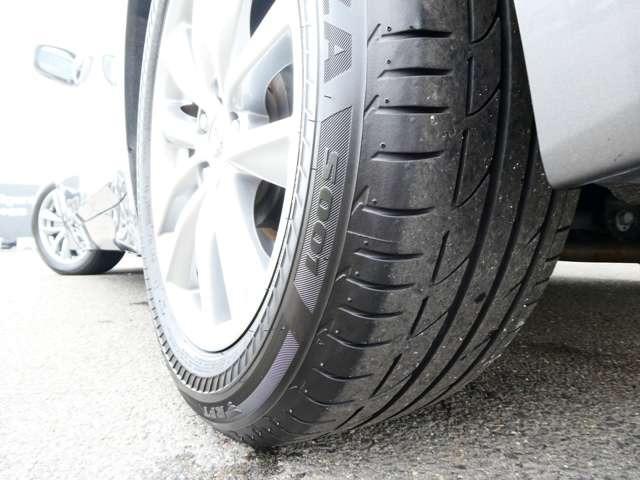 タイヤサイズは225/55R17のランフラットタイヤを装備。空気圧センサー付きで、メーター内のディスプレイでモニターできます。製造2019年製。劣化がございます交換もご相談ください。
