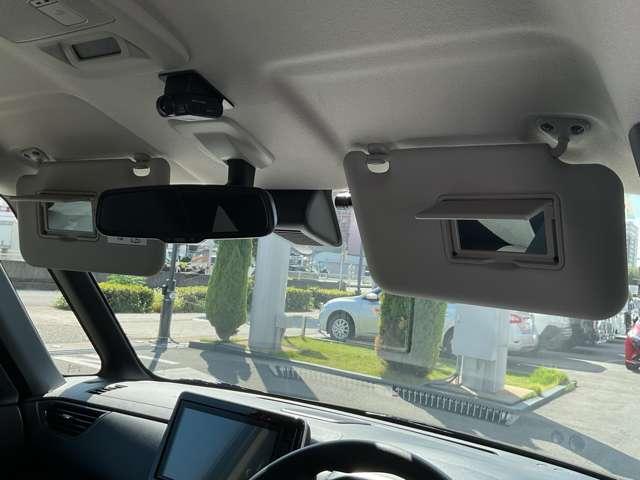 日差しを遮るためのもので、自動車のフロントガラス上部に取り付けらています。エチケットミラーも装備