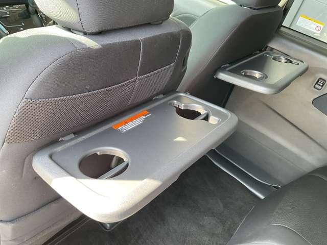 背面にかけられたテーブルで、ドリンクホルダーが付いています。