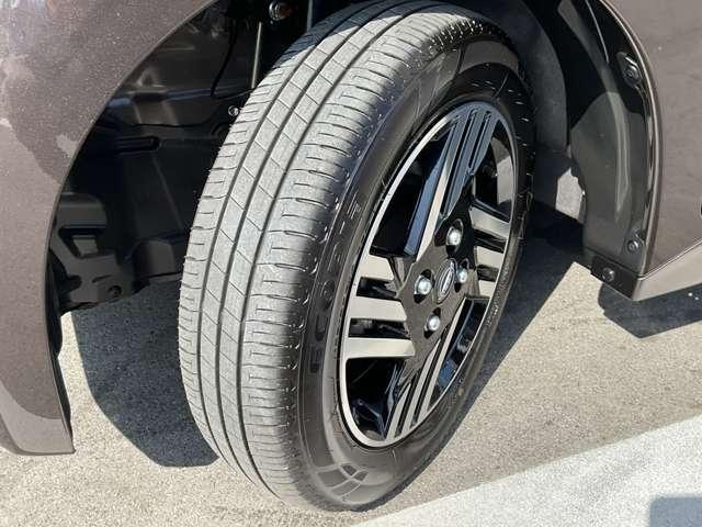 純正アルミホール・サイズは155/65R14。タイヤの溝も十分