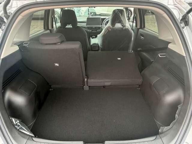 後部座席は分割で折りたたみ可能です。