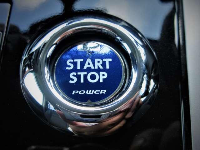 インテリジェントキ-(イモビライザ-機能内蔵)のエンジン始動&停止用プッシュボタンです。 キ-を持って乗り込んで、ブレ-キペダルを踏んでポチっとな、これだけでイイんです♪