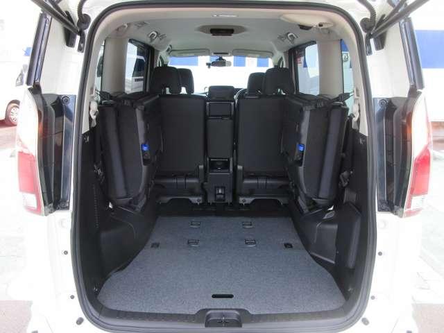バックドアを開けてみました。 3列目シ-トは使い勝手に優れる分割跳ね上げ式です。