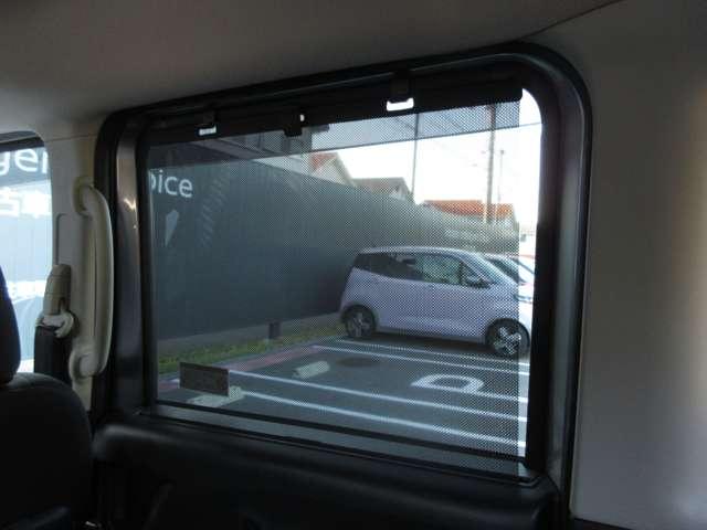 後席左右スライドドアの窓にはロールサンシェードが装備されておりますので、直射日光を遮れます