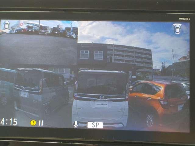 空から見下ろすような視点で、スムーズな駐車と安全確認をサポートする「アラウンドビューモニター」付です。