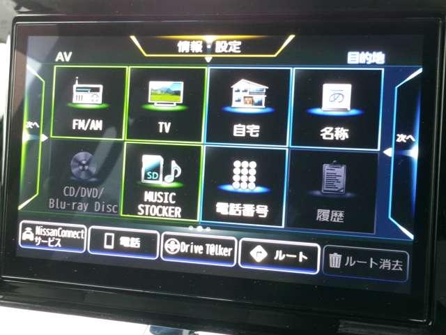 メモリーナビです。Bluetoothで好きな音楽を聴く事ができるので、ドライブがひときわ楽しくなっちゃいますね♪NISSAN CONNECTも利用出来ます。