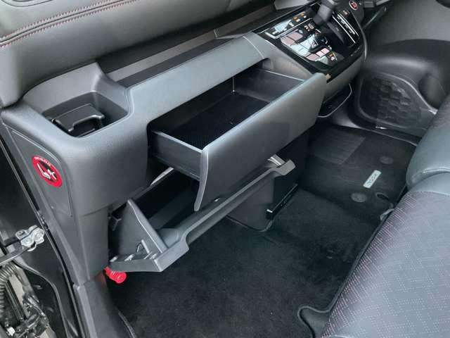助手席下の車検証ブックを入れるスペースがあります、二段になっていますので便利に使用できます!!