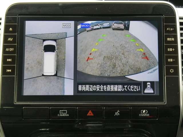 全周囲カメラで、クルマを上空から見下ろしているかのような映像を映し出します。周囲の状況がひと目でわかります!