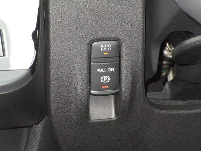 電動パーキングブレーキ。指先でスマートに操作ができます。オートホールドブレーキで坂道発進も後ろに下がらず安心です。