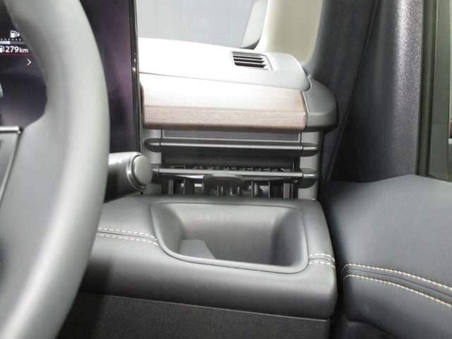 ペットボトルも置ける運転席ドリンクホルダー。エアコンの風で飲み物が適温に保たれます。