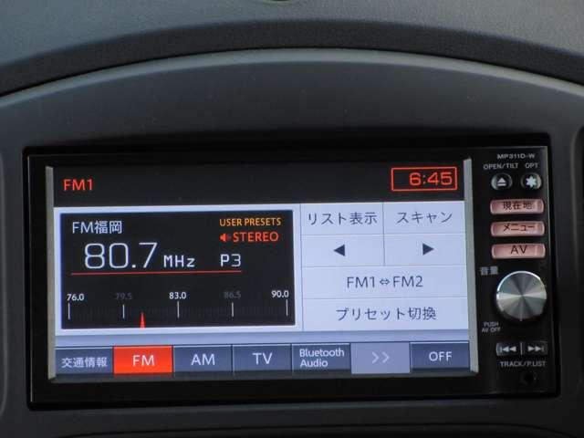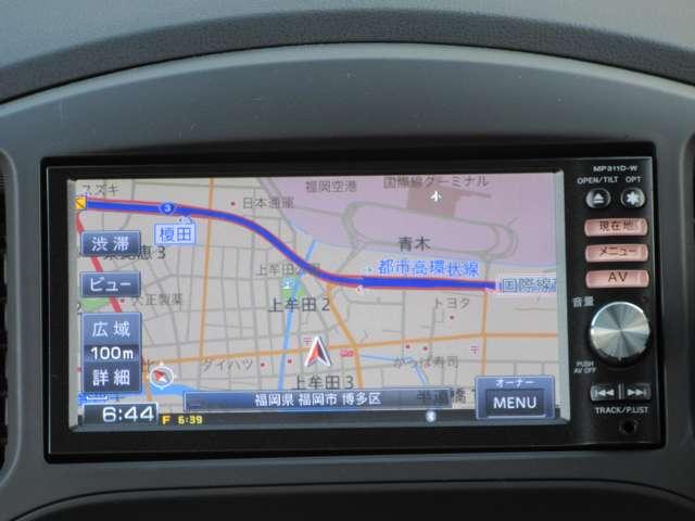 日産純正のメモリーナビ付きです。知らない場所にお出かけの際には非常に活躍します。Bluetoothを搭載しておりますので、運転中でもハンズフリーにて通話を行うことができます。