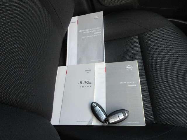 整備手帳やナビゲーションの説明書付きです。盗難防止装置のイモビライザーを装着しているリモコンキー付きなので、バックに入れたままでもドアロックやエンジン始動をしていただくことができます。