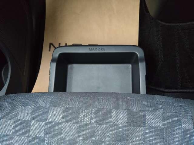 助手席シートの下に、便利な前後スライド式のアンダーボックスを装備。運転用の替え靴や、車内に常備したいこども用品、着がえた服などを収納できます