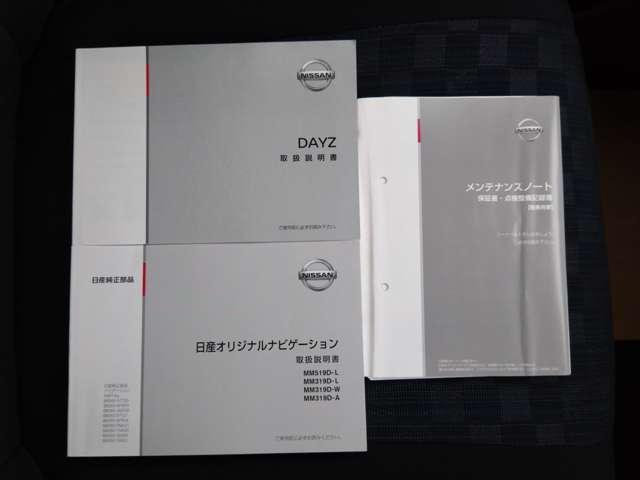 取り扱い説明書、保証書そろっています。おクルマの点検整備や保証内容がきちんと記録されているから安心です。