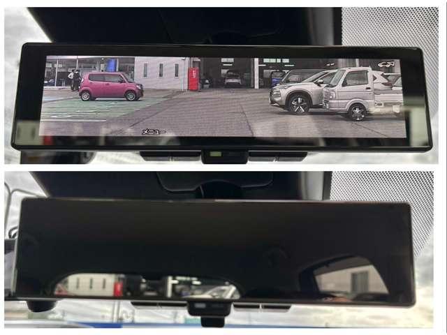 【インテリジェントルームミラー】通常のミラーと、車両後方のカメラで映し出される映像で確認できるモードをお使い頂けます!乗員や荷物で後ろが見えないときや、雨で視界が悪いときに便利です!