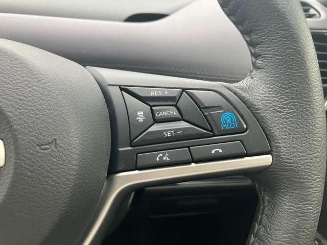 プロパイロットのセットは、親指だけの2ステップでOK!車線をキープし、リーフがアクセル、ブレーキ、ステアリングをコントロールして、前車との車間距離を保つ手助けをします。