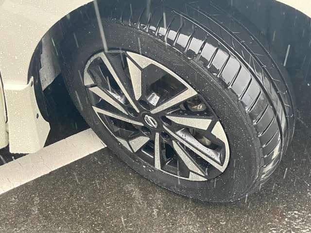 足元を引き締めるハイウェイスター専用16インチアルミホイール。高い走破性と低燃費性能を兼ね備えたエコタイヤを採用しています。