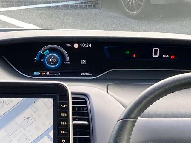 ■メーターパネル■航続可能距離や平均燃費等確認することができます。操作も簡単ですので始めて乗る方でも安心してご利用いただけます。