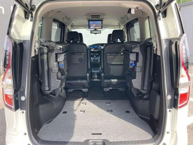 後部座席に座れる状態でも荷室はこれだけの広さがあるのでお出かけやお買い物にも重宝します。ついつい買い物しすぎても安心ですね♪