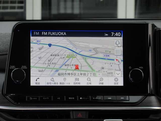 日産純正のメモリーナビ付きです。知らない場所にお出かけの際には非常に活躍します。Bluetoothを搭載しておりますので、運転中でもハンズフリーにて通話を行うことができます。