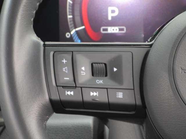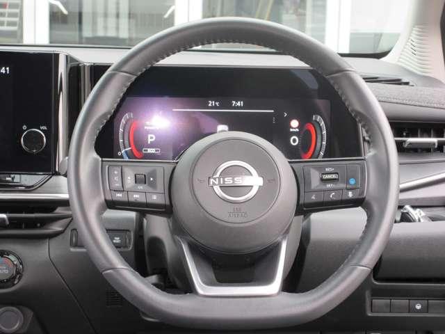 ハンドルの右側にはプロパイロットシステムのスイッチが付いているので、高速道路の運転が楽になりますよ!左側のオーディオ操作のスイッチにて音量調整等をナビを直接触ることなく操作ができます。