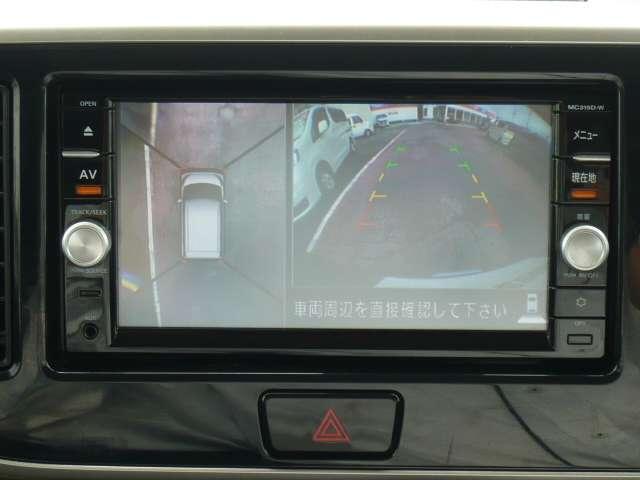 クルマを真上から見下ろしているかのような映像によって、車庫入れや縦列駐車などの駐車時に、自車と駐車位置の関係をひと目で確認でき、スムースな駐車をサポートします。