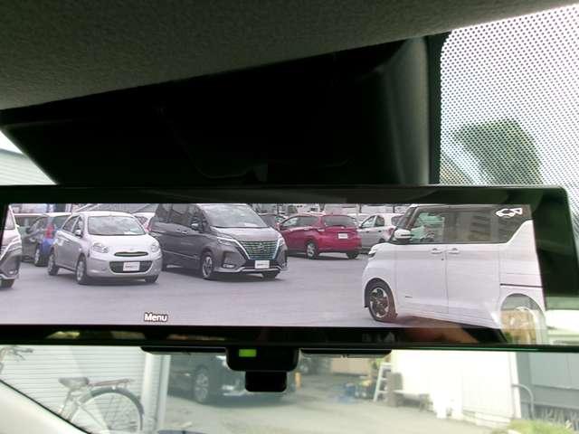 インテリジェントルームミラー、後方がカメラの映像で見れるので視界くっきり、車内に障害物があっても関係ありません。普通のバックミラーとも切りかえが出来ます。