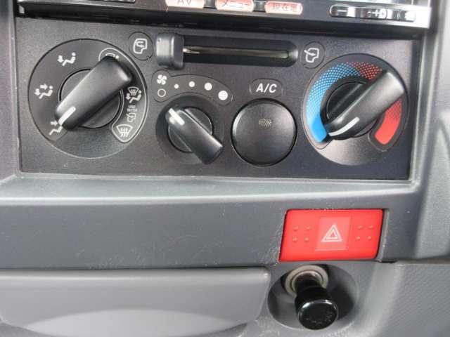 シンプルで扱いやすいマニュアルエアコンを装備。 手探りで操作が出来る分、考え方によっては安全かも知れませんね。