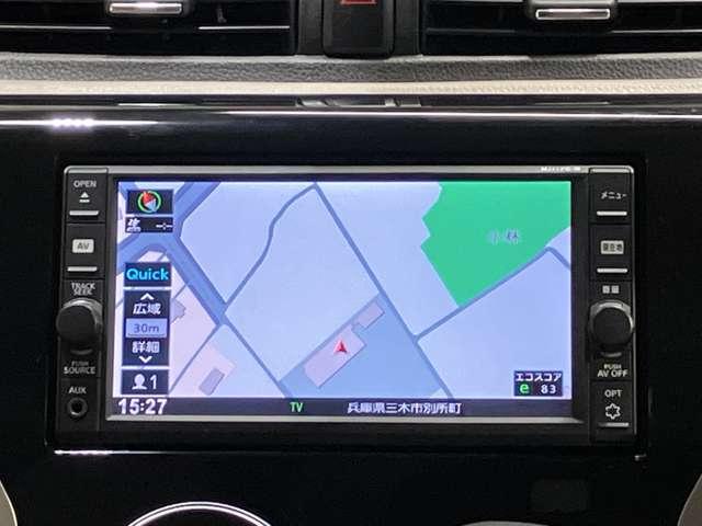 日産純正メモリーナビ(MJ117D-W)です。クリアな画質を楽しんでいただけるフルセグ地デジTVなど、書ききれないほどの機能が満載です。