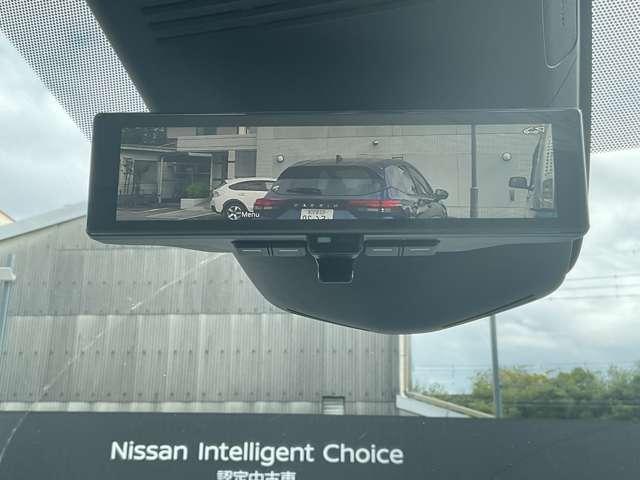 インテリジェントルームミラーです。人や物で視界が遮られてても、車体後部のカメラ映像に切り替えることにより、クリアな後方視界を実現しています。