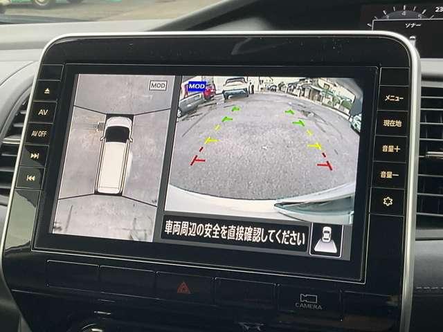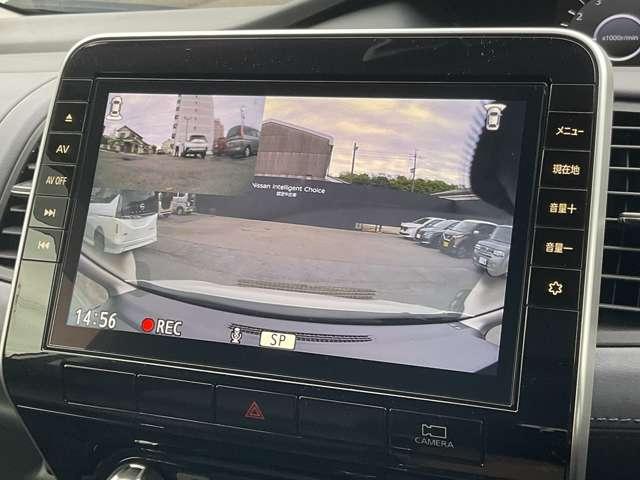 アラウンドビューモニターです。上空からお車の周りを見る感覚で表示されますので、車庫入れも簡単